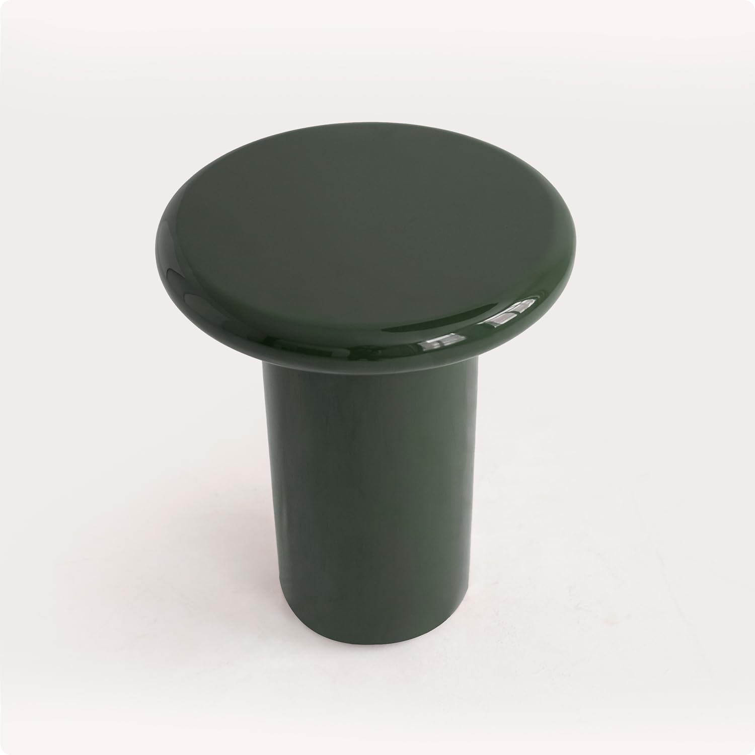 - Add a touch of modern sophistication to your space with this striking cylindrical living room end table. Featuring a clean, minimalist design with a bold cylindrical base and slightly wider round top, this small end table for small space makes a contemporary statement while maintaining ultimate functionality. Its high glossy finish and architectural shape make it perfect for modern or minimalist interiors.