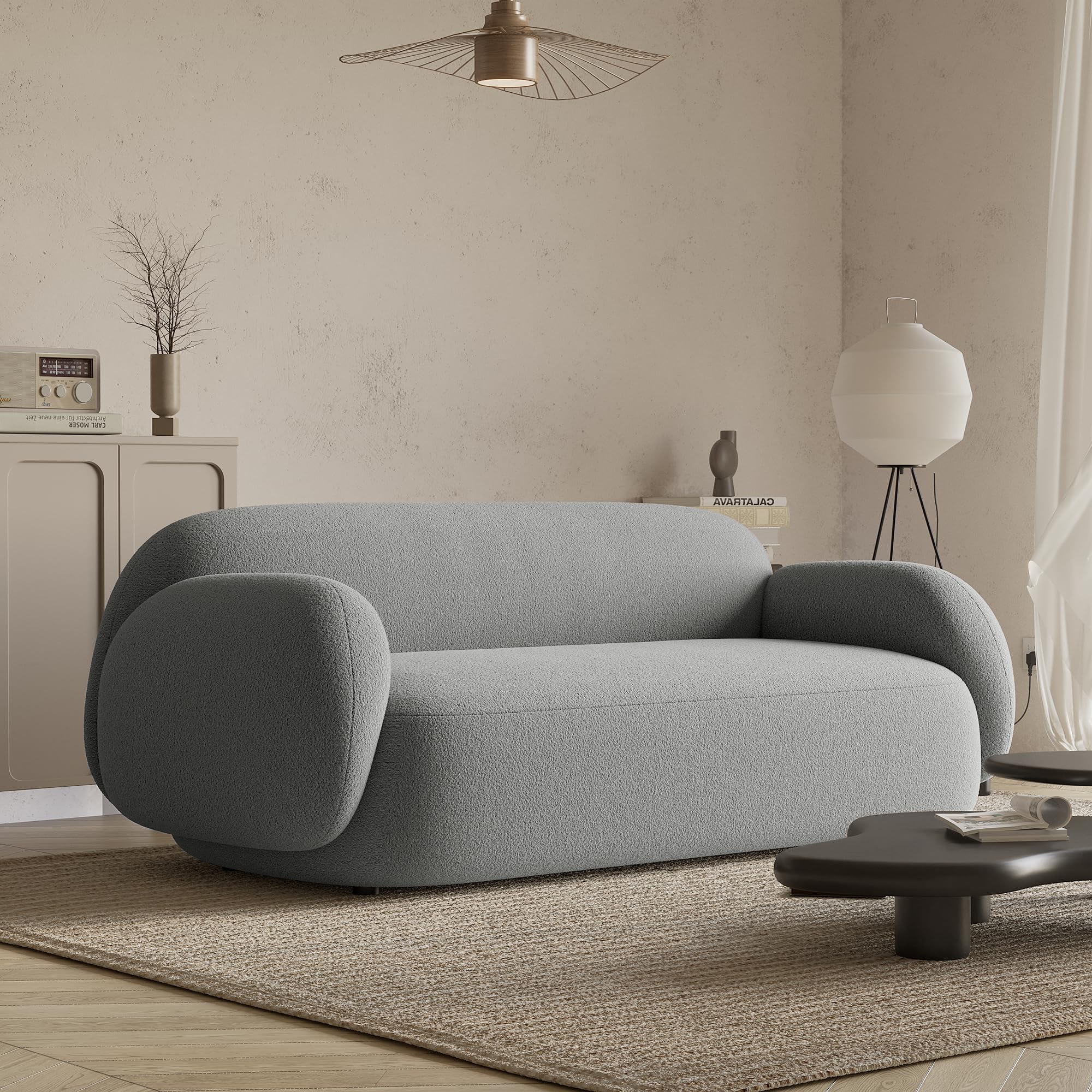 Acanva Modern Minimalist Sofa for Living Room Lounge Home Office, Rounded Edges Couch with Soft Boucle Upholstered, 74”W, Grey