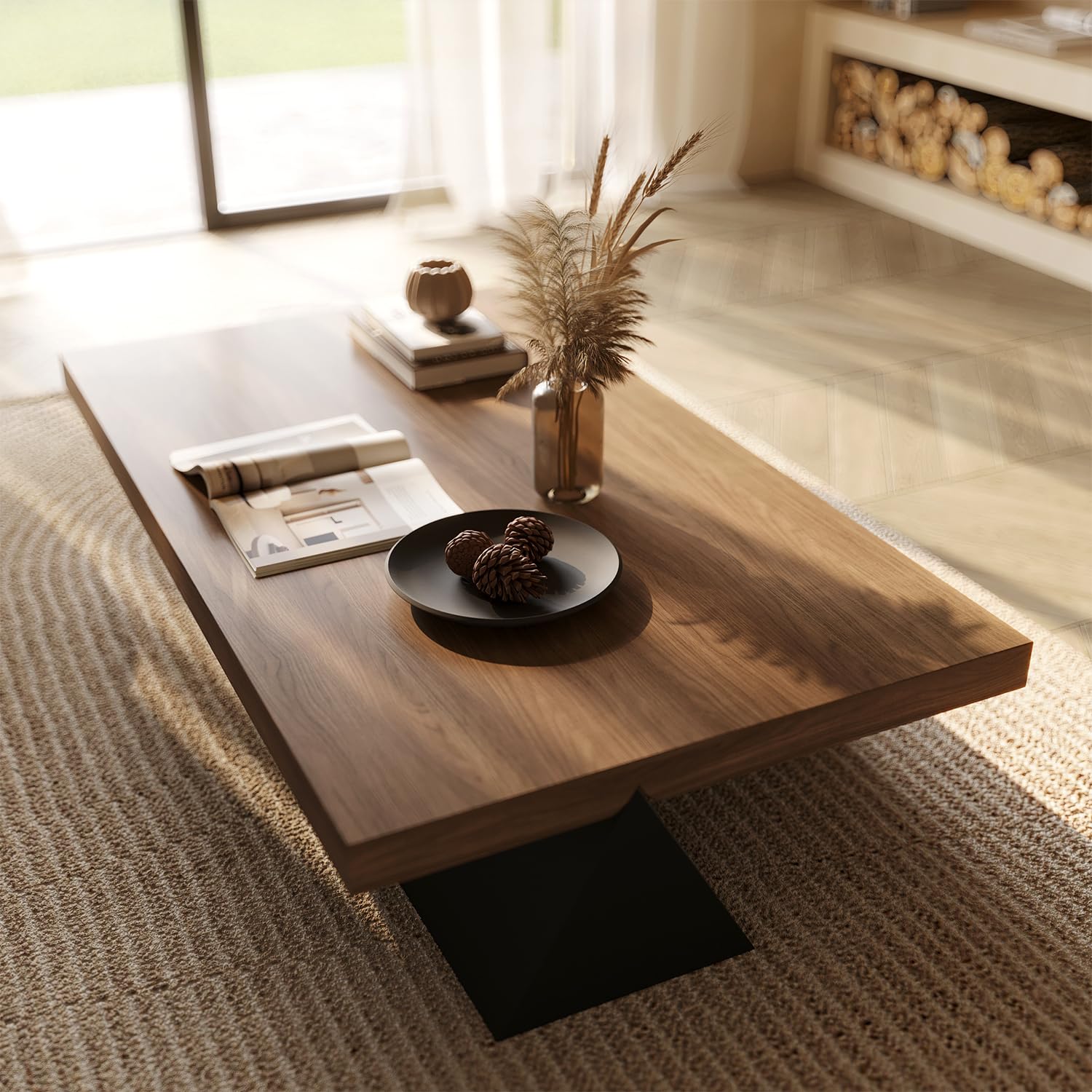 - Premium material combination: This living room center table is crafted with a solid MDF, crown walnut veneer table top, and black high glossy base, offering both natural warmth and industrial sophistication while ensuring exceptional durability.