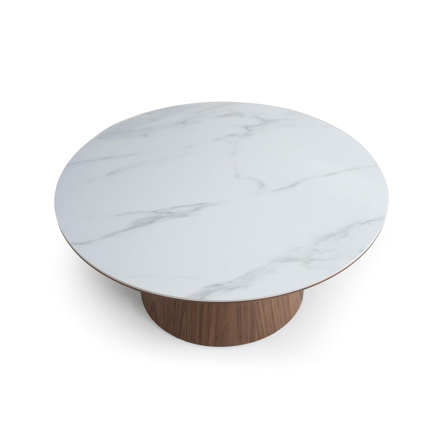 - Premium construction: Crafted with a 31mm thick white ceramic and Snow Mountain stone top paired with a crown walnut veneer base which is made of MDF, this center table for living room offers a blend of elegance and durability.